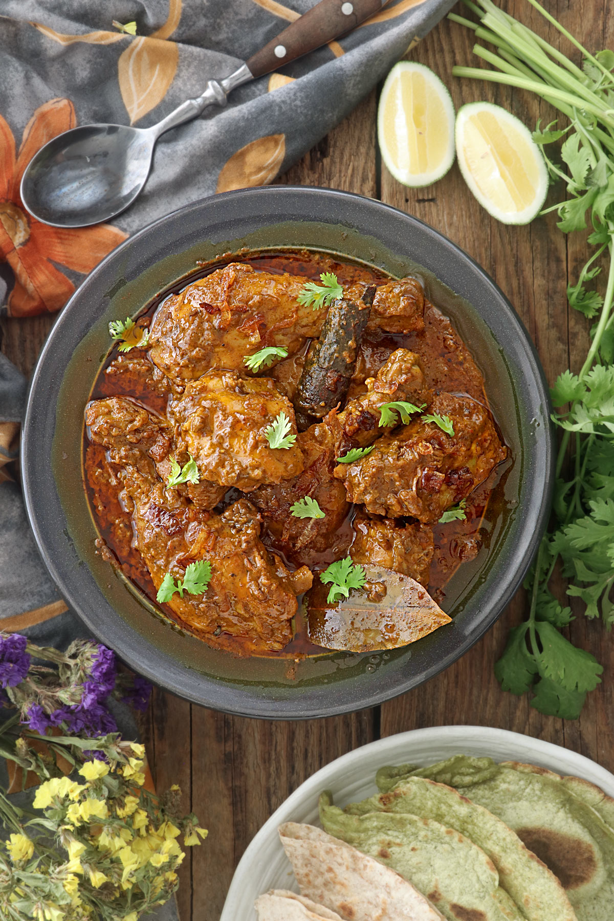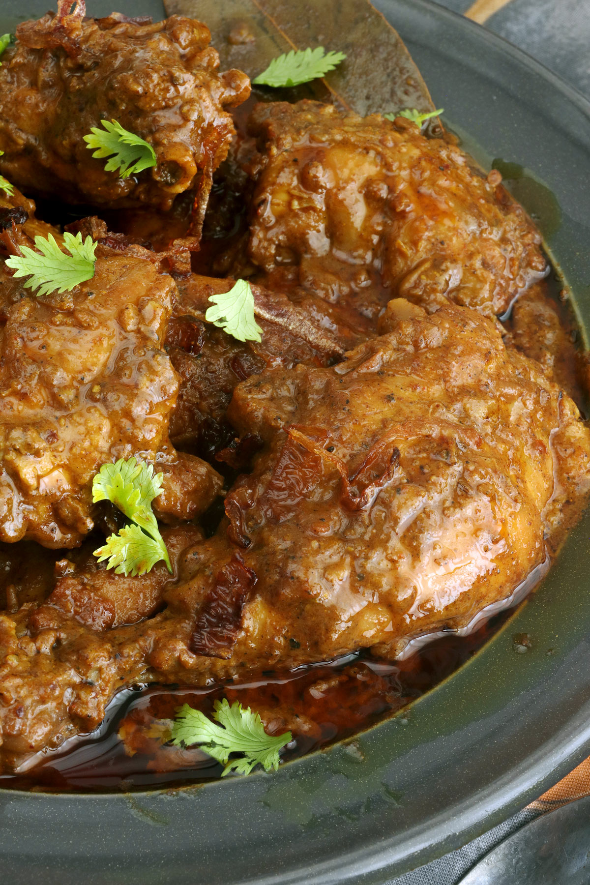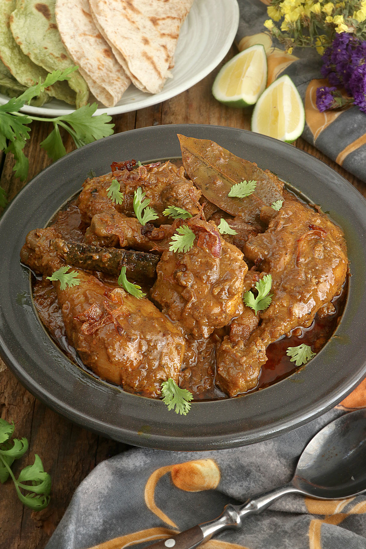 This chicken curry dish is full of flavor thanks to spices like garam masala, turmeric, paprika, and red chili powder, all balanced with creamy yogurt and aromatic fried onions. I added whole spices like bay leaves, cardamom, cloves, cumin, and cinnamon bark for a more authentic taste.